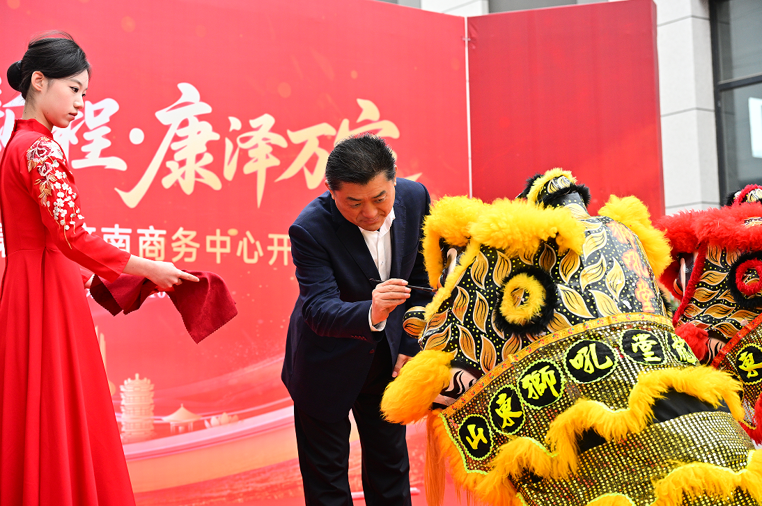 高肇林董事長(cháng)在開(kāi)業(yè)慶典現場(chǎng)為新獅點(diǎn)睛