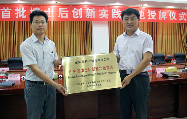 山東益康集團 > 集團新聞集團新聞益康藥業(yè)“全省首批博士后創(chuàng )新實(shí)踐基地”授牌儀式舉行8月20日,山東益康藥業(yè)“全省首批博士后創(chuàng )新實(shí)踐基地”,經(jīng)省人社廳正式授牌。益康藥業(yè)成為棗莊市僅有的兩家入選單位之一,也是我市設立的首家博士后創(chuàng )新實(shí)踐基地,填補了我市省級博士后工作平臺的空白,成為我市促進(jìn)人才引進(jìn)培養、產(chǎn)學(xué)研結合的又一重要載體。棗莊市人社局副局長(cháng)王振到企業(yè)授牌,南沙河鎮黨委副書(shū)記、鎮長(cháng)周琪參加授牌儀式。王振對益康藥業(yè)的人才隊伍建設、科研平臺建設、技改投資等方面的工作給予高度評價(jià),要求企業(yè)落實(shí)好博士后創(chuàng )新實(shí)踐基地各項工作任務(wù),早日建成國家級博士后工作站。 錄入時(shí)間:2014/8/29 Hits:4221 |
