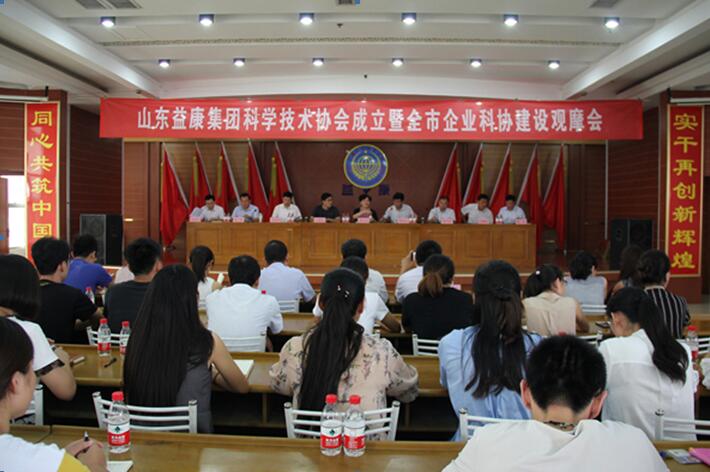 會(huì )議上,朱君代表山東益康集團科協(xié)籌委會(huì )向大會(huì )匯報籌備工作情況,史永強宣傳《山東益康集團科學(xué)技術(shù)協(xié)會(huì )章程》,大會(huì )審議通過(guò)該章程并通過(guò)了山東益康集團科學(xué)技術(shù)協(xié)會(huì )第一屆委員會(huì )成員名單。史永強同志新當選益康集團科學(xué)技術(shù)協(xié)會(huì )主席并表態(tài)發(fā)言。 董事長(cháng)高肇林作重要講話(huà),對新成立的集團科學(xué)技術(shù)協(xié)會(huì )提出了殷切希望,要求協(xié)會(huì )要加強建設,圍繞集團中心工作和發(fā)展目標,開(kāi)拓創(chuàng )新,奮勇拼搏,為推動(dòng)集團科技進(jìn)步和創(chuàng )新發(fā)展貢獻力量。 棗莊市科協(xié)譚立美發(fā)表重要講話(huà),她強調,科技是企業(yè)進(jìn)步的“動(dòng)力源泉”,人才是企業(yè)發(fā)展的“振興之本”?茖W(xué)技術(shù)協(xié)會(huì ),要在今后的工作中,大力貫徹執行國家科學(xué)技術(shù)工作的基本方針,弘揚“尊重科學(xué)、尊重知識、尊重人才”的良好風(fēng)尚,嚴格按照制定的章程和民主辦會(huì )的原則,積極開(kāi)展科技工作。 隨后,全市7家企業(yè)代表上臺領(lǐng)取了科學(xué)技術(shù)協(xié)會(huì )獎牌,全體與會(huì )人員在會(huì )后統一參觀(guān)了山東益康集團科技樓及科研成果。